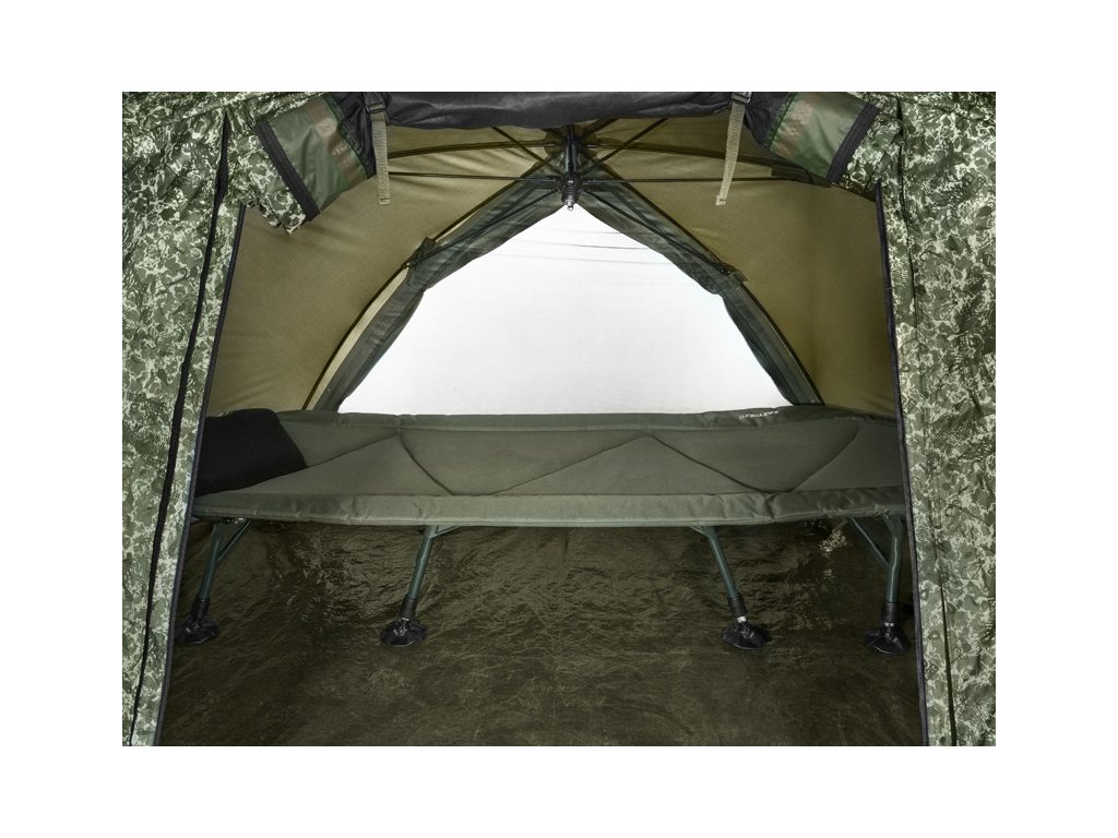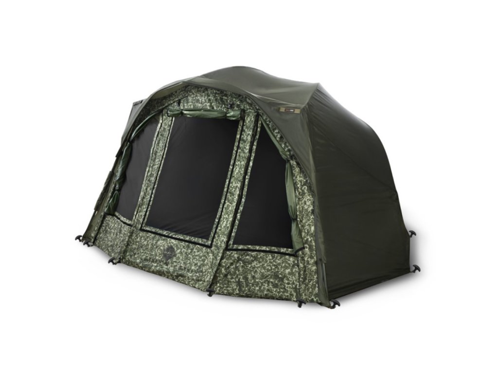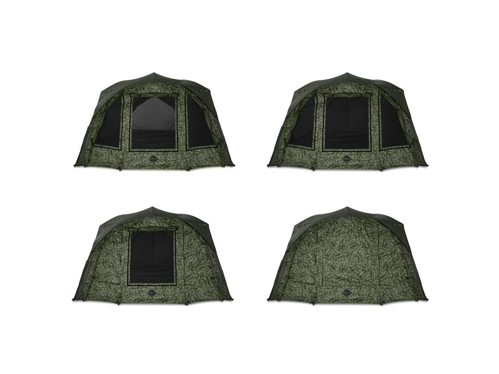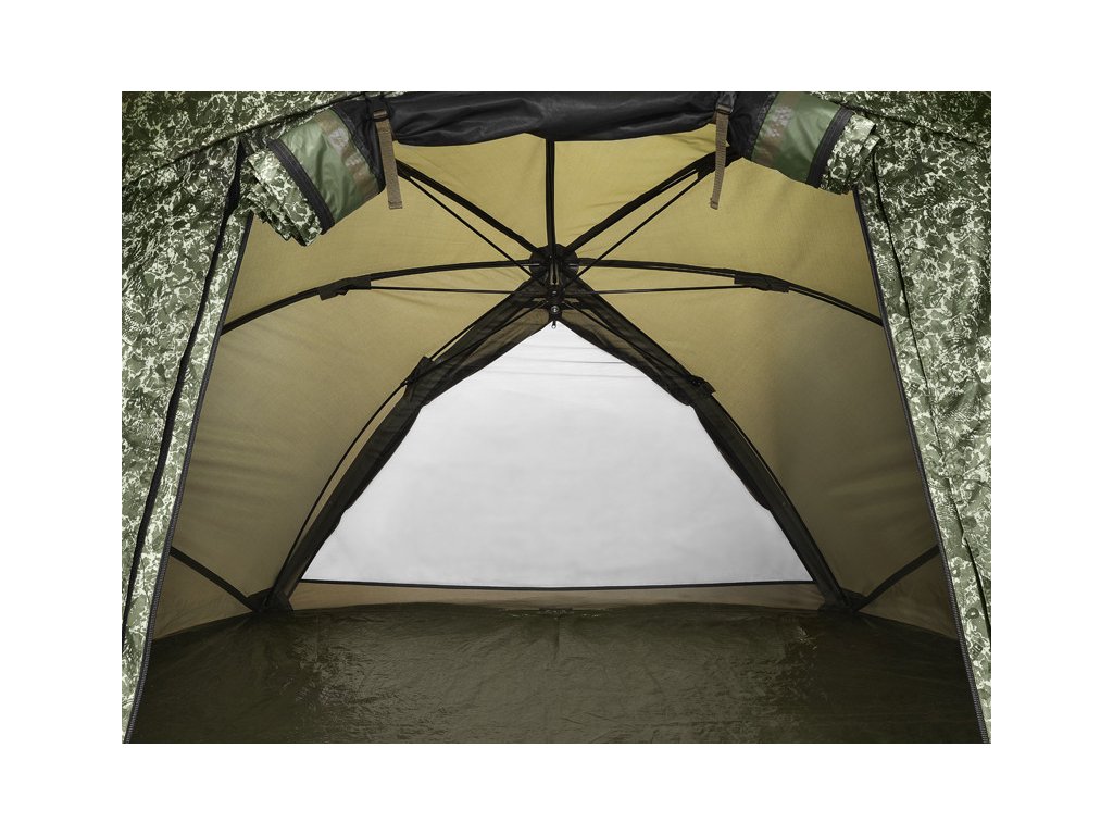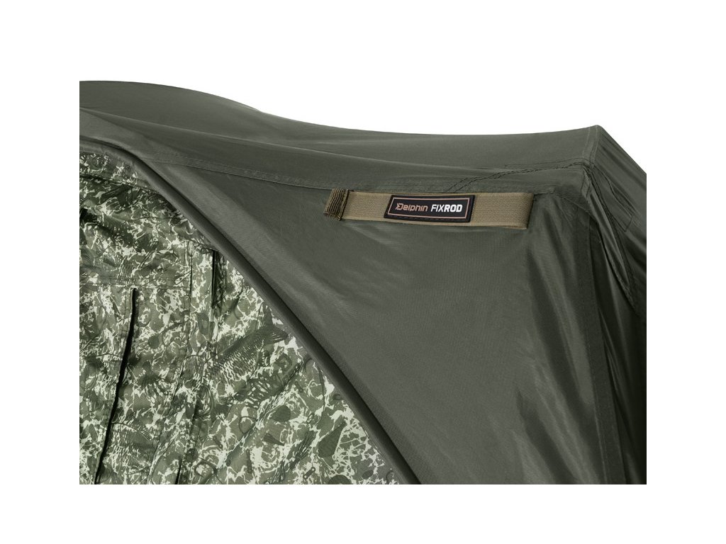 Přední panel tvoří vizuálně velmi zajímavý prvek, který potěší zejména příznivce C2G kamufláže a dodává celému brolly nádech originality. Kromě toho je ho možné v případě potřeby kompletně odepnout a RAMBLER využívat jako jednoduchý přístřešek s deštníkovou konstrukcí. Samozřejmostí jsou také dva úchyty FixROD, sloužící k opření a zafixování prutů.