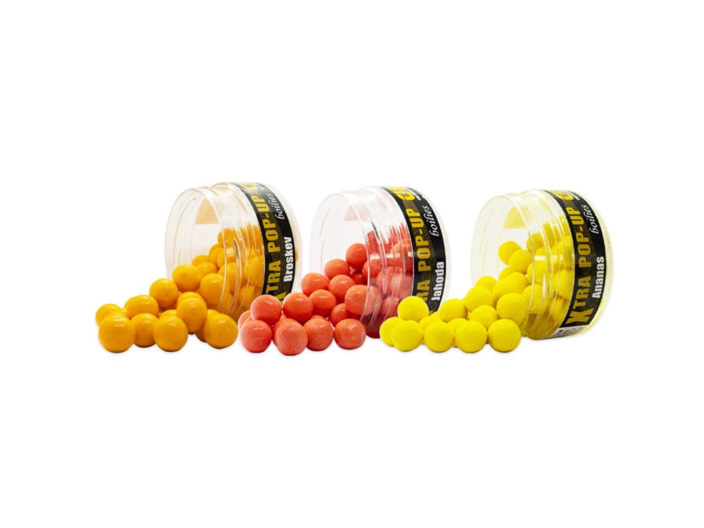 Xtra pop-up je plovoucí boilies s extra vysokým výtlakem. Navíc je zatraktivněno zalitím čistou esencí přímo do dozy.