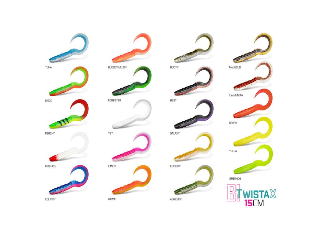 TwistaX Ealtail nabízí širokou škálu těch nejúčinnějších barevných provedení, která byla vybrána na základě dlouhodobých testů na vodních plochách po celé Evropě. Navíc jsou tyto barvy UV aktivní a tudíž umožňují intenzivnější odraz slunečního záření pod vodou, a tím pádem se nástrahy stávají nepřehlédnutelnými i ve velkých hloubkách nebo za zhoršených světelných podmínek. Nezapomněli ani na pachovou stopu, kterou gumové nástrahy zanechávají ve vodě. Nástrahy obsahují sůl a rybí aroma a jsou tak neodolatelným cílem sladkovodních i mořských ryb