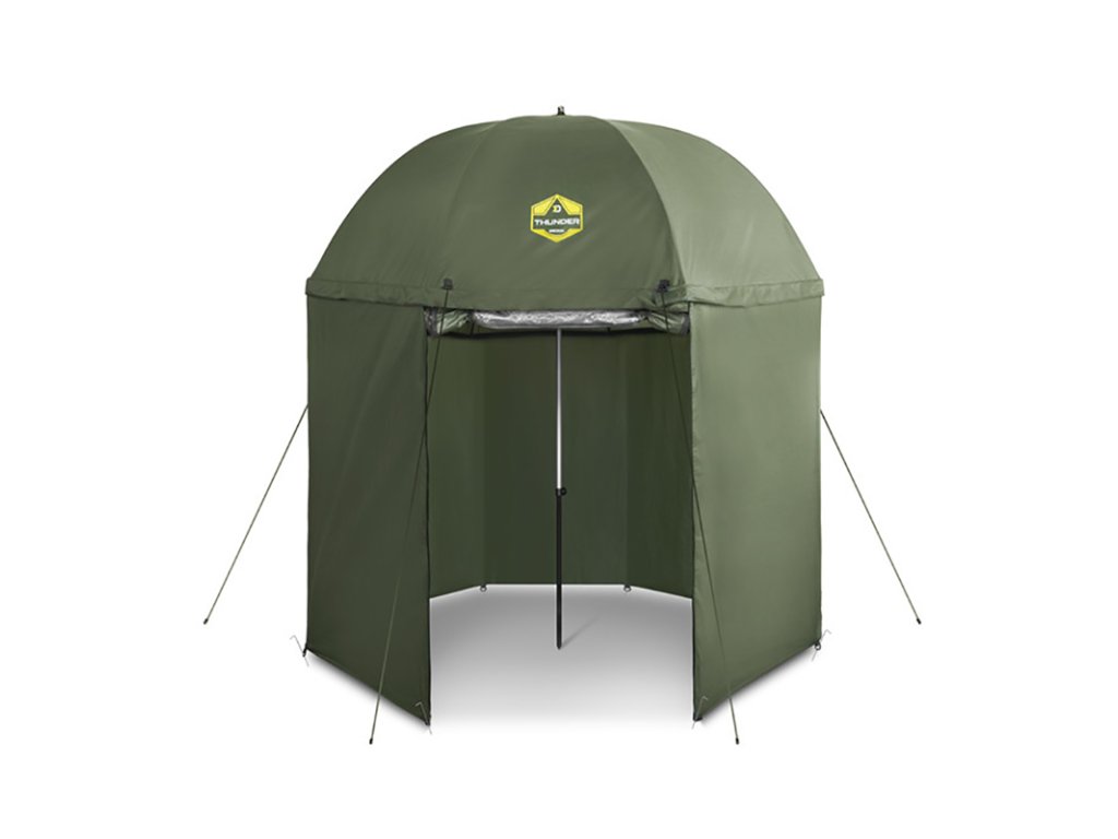 Deštník s kompletně uzavíratelnou bočnicí Delphin THUNDER FullWALL je ideální volbou do nepříznivého počasí během kratších výprav. Perfektně ochrání před nepříjemným sluncem, ranní rosou, ale i vyšším úhrnem srážek. Pro lepší stabilitu ve větru je opatřen čtyřmi kotvícími lany. Švy deštníku jsou důkladně podlepeny voděodolnou páskou pro zajištění 100% nepromokavosti i v případě silného deště.