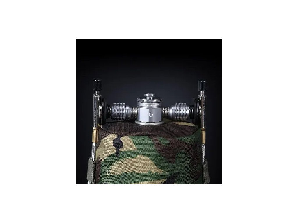 Je vyroben pomocí technologie CNC obrábění z vysoce odolného, spolehlivého a lehkého materiálu jakým je duralumin, tedy směs hliníku a mědi. K dispozici tři 7/16 závitové ventilové výstupy, které lze použít jak jednotlivé, tak v páru či všechny dohromady. Dva boční lze použít právě třeba na vařiče pro komfortnější vaření a vrchní pak třeba na upevnění lampy apod. Dalším kusem, který je včetně tohoto produktu je kruhový stojan, který lze k adaptéru připevnit pomocí dodané horní výstupní šroubovací zásuvky. Ideální pro ukotvení kanystru, když dochází palivo. Produkt je vybaven zpětným ventilem, lépe řečeno samo těsnícím a namontovaným O-kroužkem, který zajišťuje těsnost před únikem, když je připojen k palivové nádrži (EN417). Otočná ramena o 360 stupňů zaručují snadné našroubování hadic do vařičů. Specifikace: - vyrobeno z duralumin (směs hliníku a mědi) - tři 7/16 závitové ventilové výstupy - otočná ramena o 360 stupňů - samo těsnící zpětný ventil s O-kroužken - součástí kruhový stojan - hmotnost: 110 gDoplňkové parametry