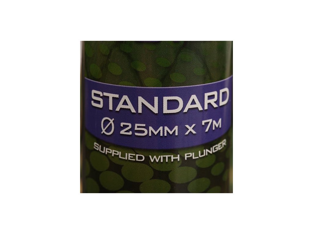 Velikost Standard obsahuje 25mm PVA síťovinu, která je nasunuta na plastový tubus, je ideální pro tvoření menších PVA pytlíků. Anebo pokud chcete aerodynamičtější pytlík pro delší hody. Každé PVA obsahuje kromě zmiňovaného tubusu a PVA síťoviny také pěchovač, který je nutným a samozřejmým doplňkem této sady. Obsah PVA síťoviny je 7m, hodí se pro celosezónní chytání.Doplňkové parametry