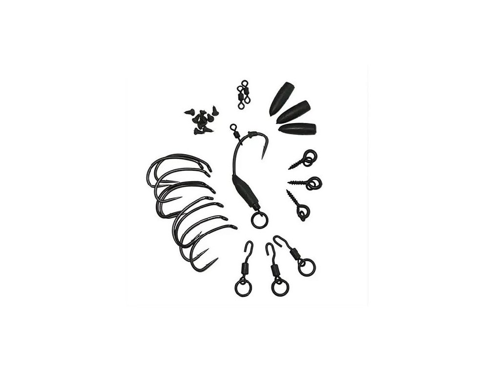 Sada obsahuje: - 1 x hotový návazec Ronnie Rig - 9 x háček bez protihrotu - 9 x zarážka Hook Stops - 3 x rukávky Tungsten Ronnie Sleeves - 3 x obratlík QC Hook Flexi-Ring Swivels - 2 x obratlík Hook Swivels - 3 x kolíček s kroužkem Flexi Bait ScrewsDoplňkové parametry