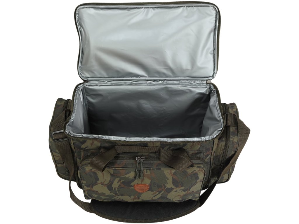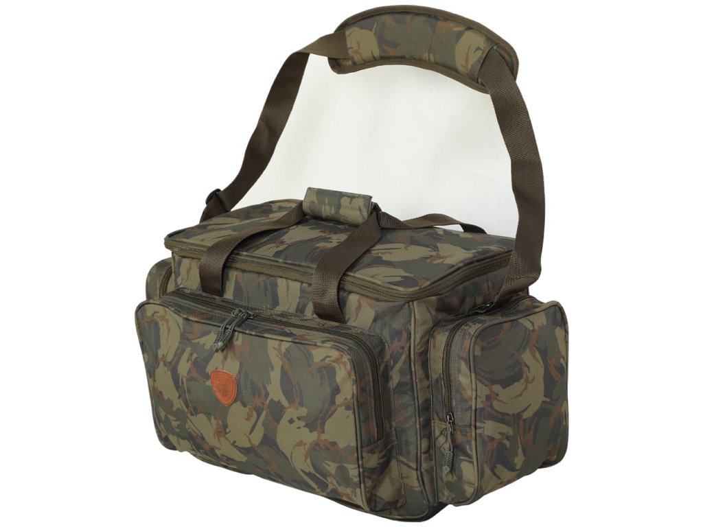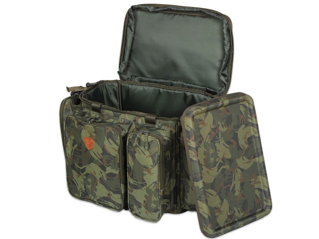 Cestovní taška se stolkem X-Large Carp Carryall + Table Velká objemná taška, která má dvě přední, dvě boční kapsy a vrchní části odnímatelný stolek. Navíc lze ještě objem zvětšit, díky dvojitým zipům ve vrchní části tašky. - Vrchní odnímatelný EVA stolek pro udržení čistoty a ochrany - Nastavitelný a polstrovaný ramenní popruh - Po bocích tašky madla pro snadné přenášení - Spodní část tašky s omyvatelným dnem - Vodě odolný nylonový materiál 210D - Rozměry: 62 x 40 x 37 cm - Hmotnost: 2,0 kg Cestovní taška Gaube Medium/Thermo Carryall Cestovní taška střední velikosti, která se dá použít také ke kratšímu uchování potravin. Provedení v atraktivním kamuflážovém provedení. - Střední taška s hlavním izolovaným prostorem - Tři vnější kapsy na zip pro uložení různých věcí - Nastavitelný a polstrovaný ramenní popruh - Vodě odolný nylonový materiál 210D - Rozměry: 55x27x30cm - Hmotnost: 1,1kgDoplňkové parametry