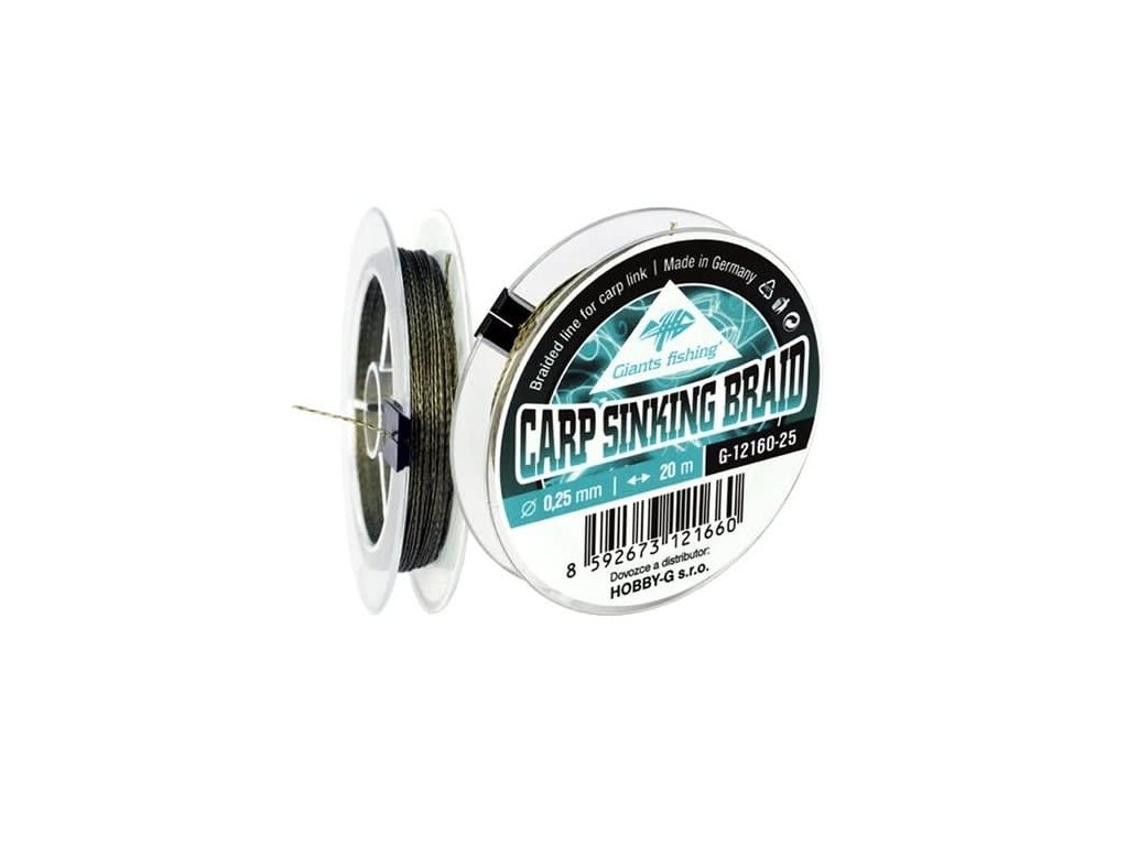 Šňůra je vyrobená z velmi silných vláken a její profil je kulatý. Jelikož její hustota je vyšší než voda, tak se snadno a rychle potápí. Samozřejmostí je odolnost proti oděru, mušle, kořeny nebo větve této šňůře neublíží. Tato šňůra má nenápadně olivově zelenou barvu a je odolná vůči UV-záření. Je vhodná jak pro sladkovodní tak mořské rybaření. Giants Fishing, Vám přináší ty nejkvalitnější výrobky za opravdu přijatelnou cenu. Vyrobeno v Německu. Návin na cívce 20 m. Průměr: 0,10mm / Nosnost: 4,6kg Průměr: 0,12mm / Nosnost: 6,3kg Průměr: 0,14mm / Nosnost: 7,8kg Průměr: 0,16mm / Nosnost: 9,2kg Průměr: 0,18mm / Nosnost: 10,4kg Průměr: 0,20mm / Nosnost: 11,9kg Průměr: 0,25mm / Nosnost: 13,3kg Průměr: 0,30mm / Nosnost: 14,5kgDoplňkové parametry