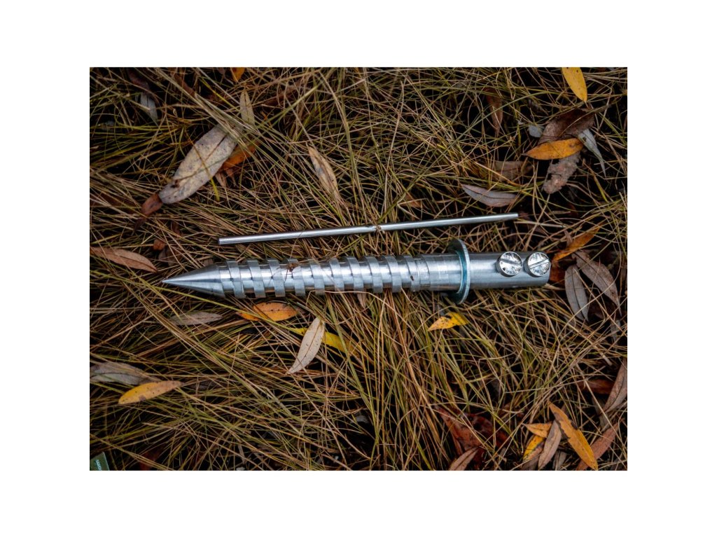 Storm adaptér lze připevnit na pruty deštníku a našroubovat teleskopickou tyč pro dodatečnou podpěru deštníku.