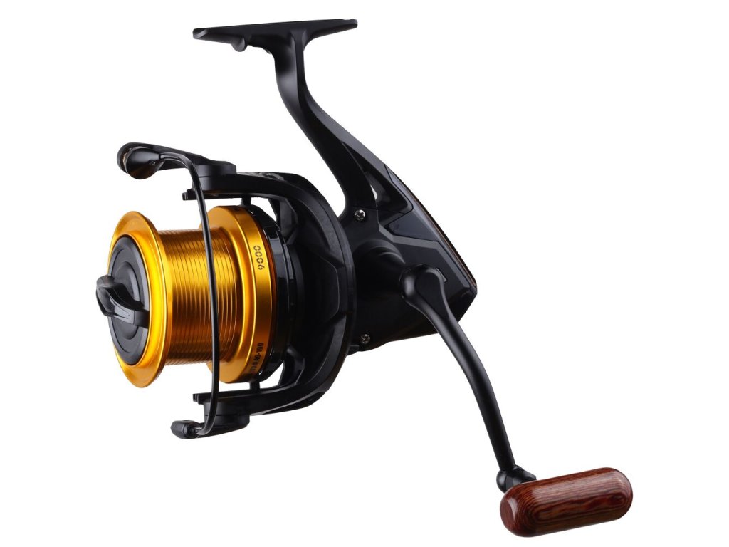 Předností tohoto navijáku je velká kapacita kovových cívek o velikosti 9000, díky tomu můžete navijáky použít jako odhozové, nebo na velkých jezerech při zavážce. Moderní design a kvalitní konstrukce jsou předurčeny k dlouhé životnosti navijáku. V této cenové relaci se jedná o naviják, který překoná Vaše očekávání a je osazen kvalitními komponenty, jako jsou kovová klička a zesílená hřídel. Rozměrné kovové cívky mají konickou odhozovou hranu, díky níž se snadno odvíjí vlasec, a tudíž dosáhnete delších hodů. Hladký chod navijáku zajišťuje vyvážený rotor a rolnička zabraňuje kroucení vlasce. U takového navijáku je samozřejmostí kvalitní přední brzda. Návin na jedno otočení kličkou 1,05 m. Hmotnost: 594g Převod: 4,6 : 1 Počet ložisek: 6+1 Kapacita cívka 9000 : 0,34 mm – 370 m, 0,40mm - 270mDoplňkové parametry