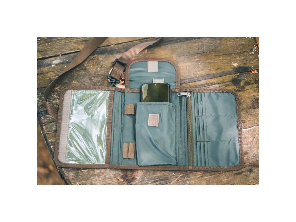 K dispozici je několik kapes k uložení, karet, povolenky, peněz, telefonu a pera atd. Dodáváno s odnímatelným ramenním popruhem. Vyroben z odolného a vodě odpudivého nylonu 210D, který je v decentním kamuflážovém vzoru. Rozměry: 14x21cm Hmotnost: 34gDoplňkové parametry