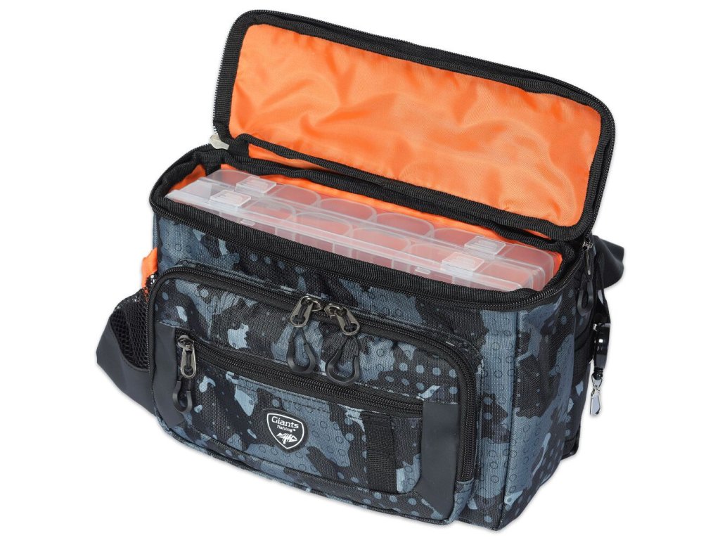 - Pření kapsa s integrovaným cvakátkem vlasce - Dvě větší krabičky (27,5 x18 cm) v hlavní části tašky - Boční síťová kapsa na láhev s vodou - Vodu odpudivá látka 420D v kamuflážovém vzoru - Rozměry ledvinky: 28x12x20cm - Rozměry krabičeK: 27,5x18x4,2cm - Hmotnost: 0,82gDoplňkové parametry