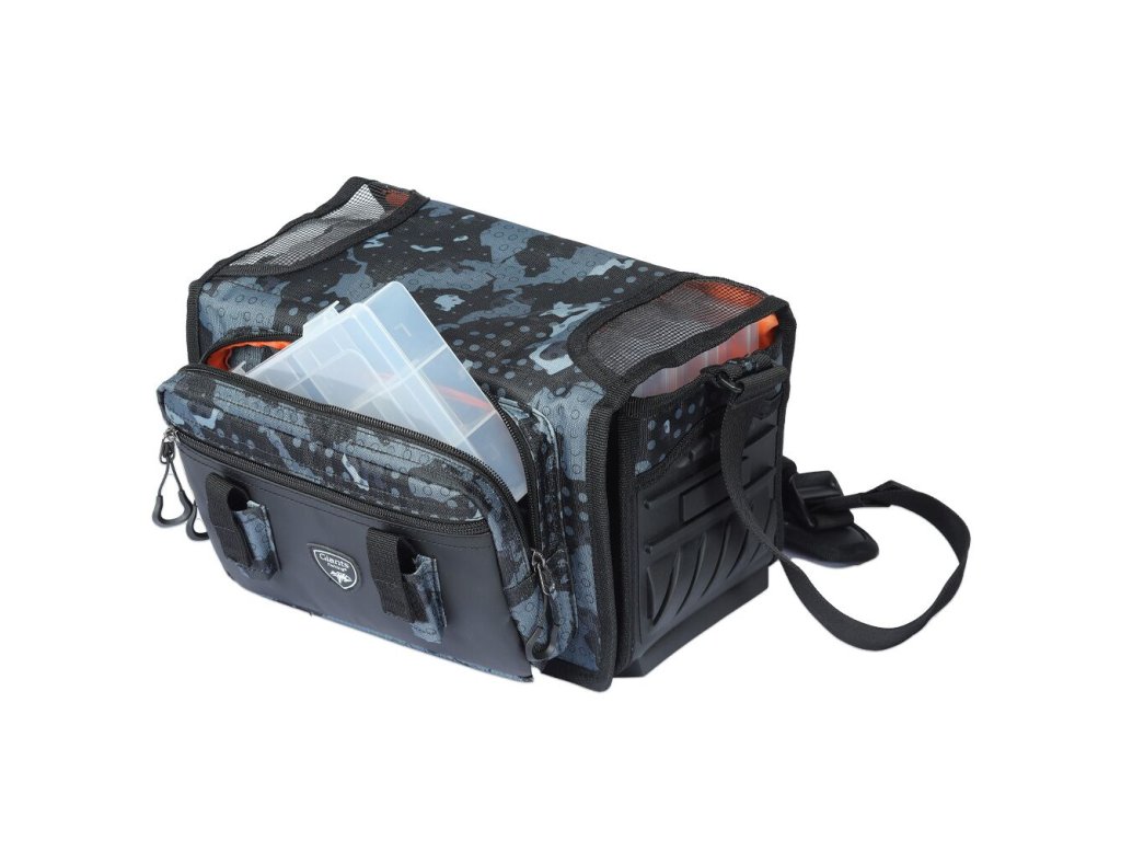 - Kombinované madlo přes rameno má integrovaný měkčený úchyt - Dvě kapsy na přední a zadní straně, každá obsahuje menší krabičku - Tři plastové krabičky, jsou umístěny v hlavní části tašky - Tvrzené gumové dno tašky, které zajistí maximální ochranu - Vodě odolný nylonový maskáčový materiál s označením 420D - Dva držáky na kleště - Rozměry tašky: 29x27x20cm - Rozměry krabiček: Menší: 20x13x4cm / Větší: 27,5x18x4,2cm - Hmotnost: 1,58kgDoplňkové parametry