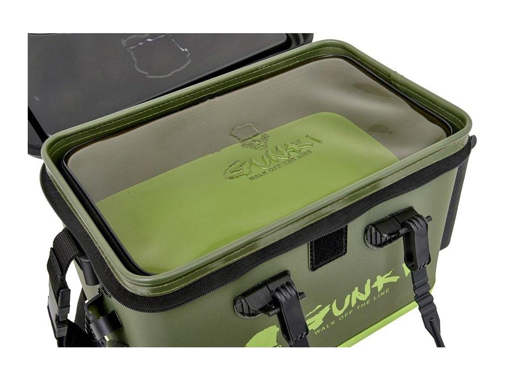 Nepromokavé pouzdro s průhledným víkem na zip. Slouží pro uskladnění nástrah a drobností. Je vyrobeno z odolného 1mm EVA, které poskytuje dokonalou ochranu před vodou. Lze ji vložit dovnitř tašky Gunki Hard Lid 40 nebo ji umístit do držáku na horním víku tašky.