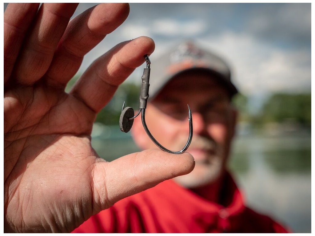 Sumcový jednoháček s fixačním hrotem. Díky hrotu drží háček v nástražní rybce bez jejího poškození.