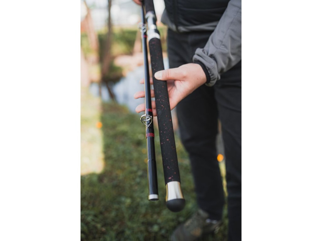 Díky své délce 3,1m a ohromující zátěži 600 - 1000 g, můžete bez jakýchkoli problémů zaseknout rybu i na daleké vzdálenosti. Konstrukce kovových oček LTC (očka bez keramiky ), zajistí že se očka nepoškodí při transportu. Spodní část prutů je vybavena kovovou koncovkou s gumovým dorazem. Další vychytávkou je kovové stylové a velmi robustní sedlo, díky kterému si můžete naviják opravdu pevně zajistit, tak aby se Vám při zdolávání neuvolnilo. Šroubení navijáku je zajištěno dvěma maticemi, mezi ně je vložena gumová podložka, která je u prutu této kategorie nutností! Ergonomická rukojeť z Eva materiálu, byla pečlivě vyvíjena, aby při zdolávání velkého sumce byla maximálně komfortní a měla správný průměr pro pevné uchopení prutu. Tento prut byl vyvíjen a testován českým a slovenským týmem Hell-Cat, bezmála tři roky než přišel konečně na trh. Délka : 3,1m Gramáž : 600-1000g Počet oček : 9ks Počet dílů : 2ks Transportní délka : 155cm Hmotnost : 722gDoplňkové parametry