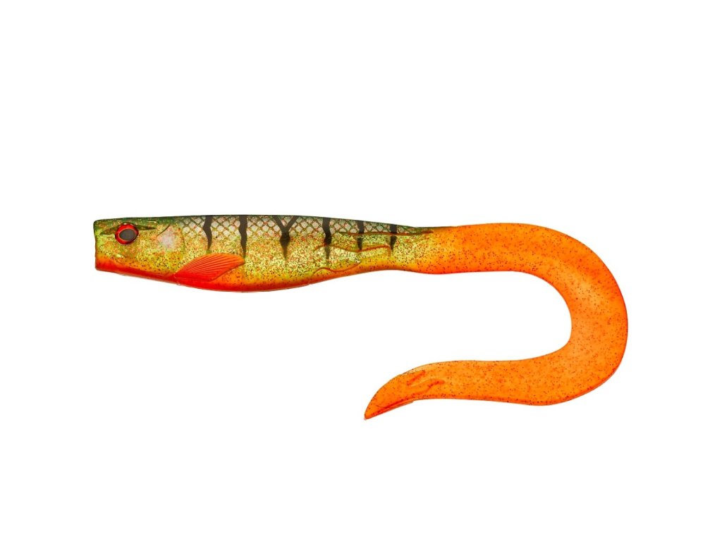 Materiál je odolný vůči mechanickému poškození a roztrhání od ryby. Unikátní je i způsob barvení. Složité barevné kombinace nejsou jen nastříkány na povrchu nástrahy, ale jsou součástí materiálu, ze kterého je nástraha vytvořena. To dodává barevnému provedení nástrahy ještě větší odolnost proti poškození při záběru ryby. Úhoř je vhodný na štiky, candáty, sumce nebo velké okouny. Perfektní i na mořskou vláčku - velcí polaci z něj vysloveně šílí. Ocásek je velice měkký a skvěle pracuje i při minimálním pohybu. Napuštěno speciálním aromatem pro ještě větší dráždivý efekt.