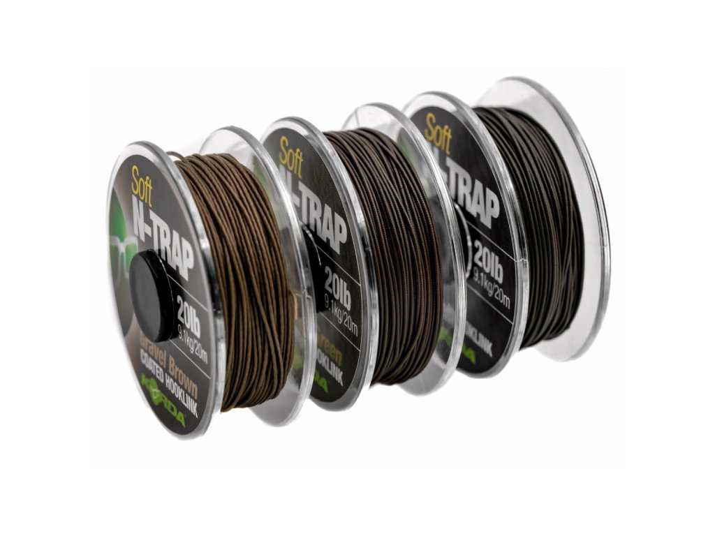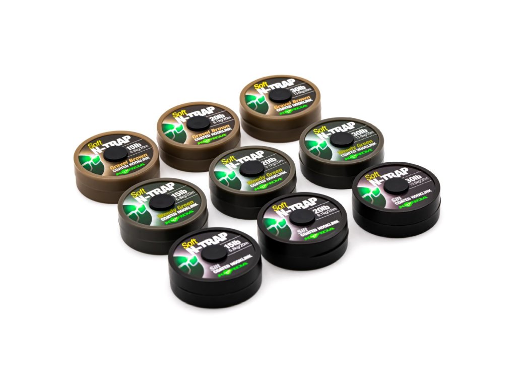 N-Trap Soft je jeden z nejlepších potahovaných pletených materiálů, který je velmi oblíbený a vhodný pro vázání široké škály různých montáží. Má pevný, matně zbarvený povlak, který se velmi snadno svléká, přesto se při utahování uzlů nepraská a je stále dostatečně měkký, aby přiléhal ke dnu. Vnitřní oplet je z velmi pevného Dyneema materiálu, který ladí s barvou povlaku, aby byl co nejméně nápadný, a je k dispozici ve verzích Weedy Green, Silt nebo Gravel Brown. Dodává se v řadě pevností, aby pokryl prakticky jakoukoli rybářskou situaci doma i v zahraničí – 15lb, 20lb nebo 30lb. Každá cívka obsahuje 20m návazcové šňůrky N-Trap Soft.