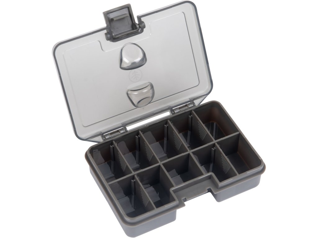 Specifikace: - vnitřní uspořádání zatěsněno tak, aby nedocházelo k zamíchání jednotlivé bižuterie při transportu - možnost variabilního nastavení vnitřního prostoru (max. do 10 přihrádek) - lze umístit krabičky malé velikosti (Small Tackle Boxes) a krabičky na návazce (Rig Boxes) - tvarovaný plastový zámek pro snadný přístup a uzamčení -rozměry: 110 mm (délka) x 80 mm (šířka) x 15 mm (hloubka)Doplňkové parametry