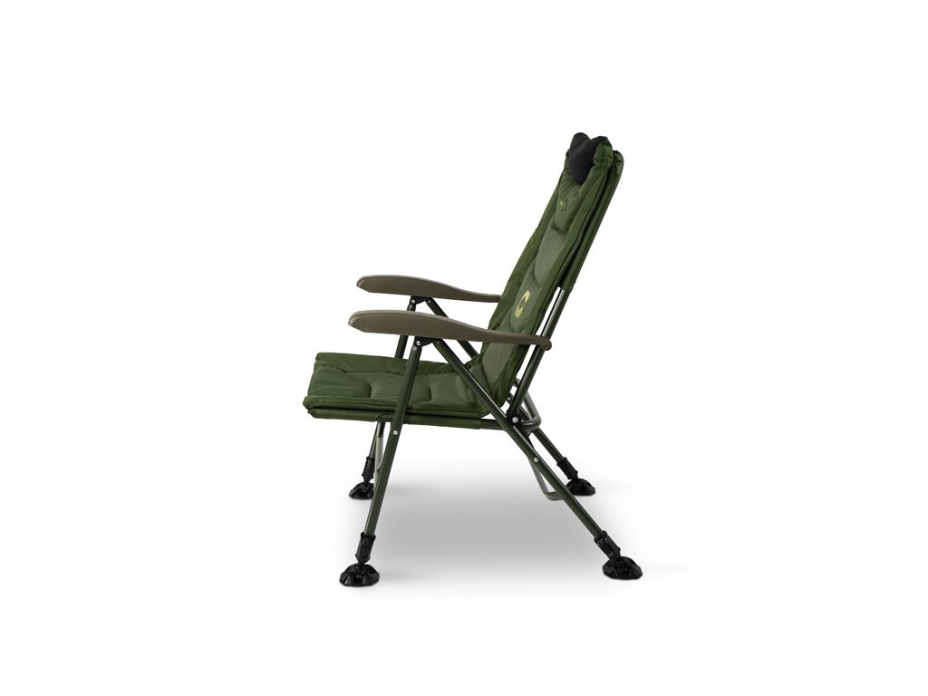 Samotná matrace byla navržena a prošívána tak, aby se tělo a zejména záda během sezení cítila co nejpřirozeněji a nejpohodlněji. Dlouhodobou životnost zaručuje kvalitní 600D látka, kterou je vybavena právě zádová i sedací část. O maximální pohodlí hlavy a krční páteře se stará opěrka hlavy s paměťovou pěnou. V oblasti loketních opěrek je křeslo vybaveno nastavitelným mechanismem, který umožňuje až 5 úrovní sklonu opěradla, takže si můžete jednoduše zvolit úhel opěradla podle aktuálních potřeb. Výškově nastavitelné nohy umožňují přizpůsobit křeslo nerovnému terénu a zaručují stabilitu i v náročných podmínkách. O bezpečné zajištění polohy se starají flexibilní robustní patky, jejichž velká plocha účinně zabraňuje zapadnutí nohou do měkké půdy u vody. Navíc je křeslo vybaveno plastovým klipem, který fixuje jeho polohu během převozu a předchází nechtěnému rozevírání.