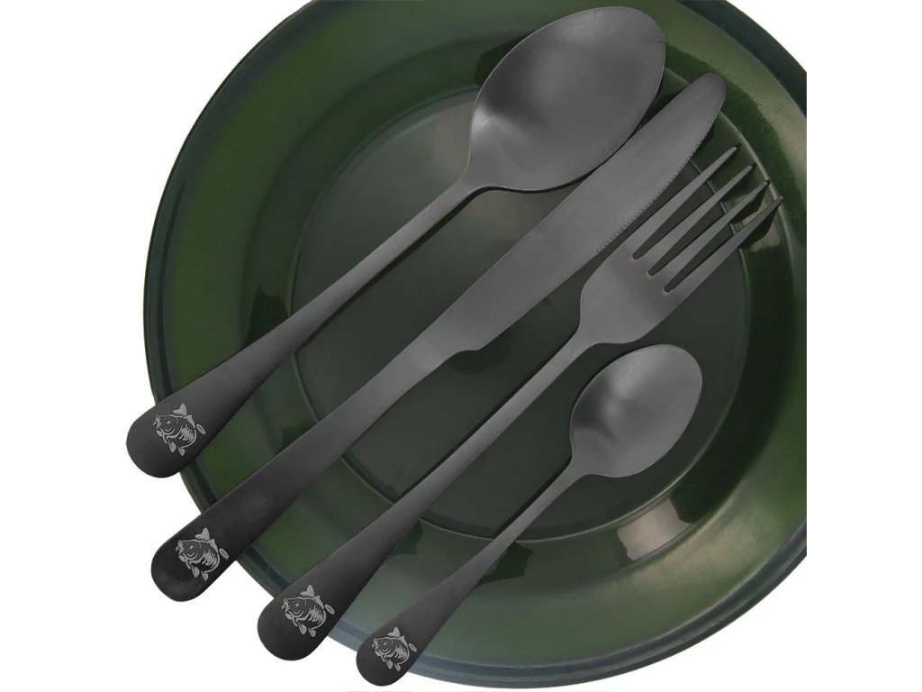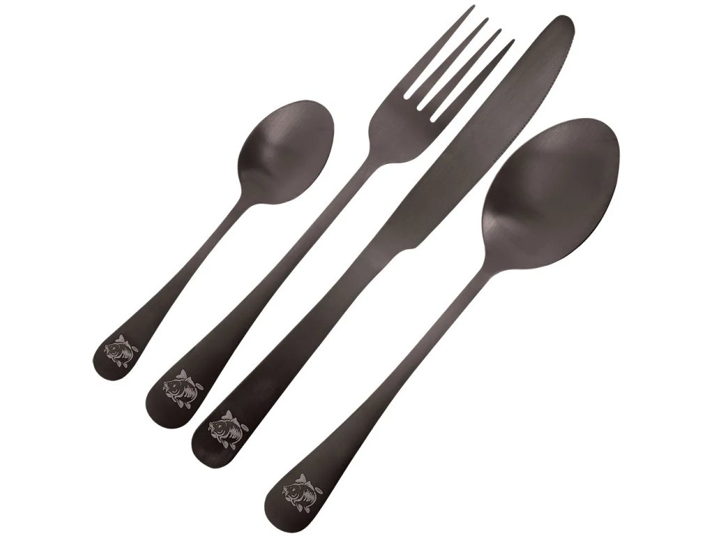 Elegantní a praktická sada příborů pro rybáře, která kombinuje odolnost, pohodlí a moderní design. Každý kus je vyroben z nerezové oceli s matným food-grade povrchem a zdoben logem kapra, což ocení každý kaprař.