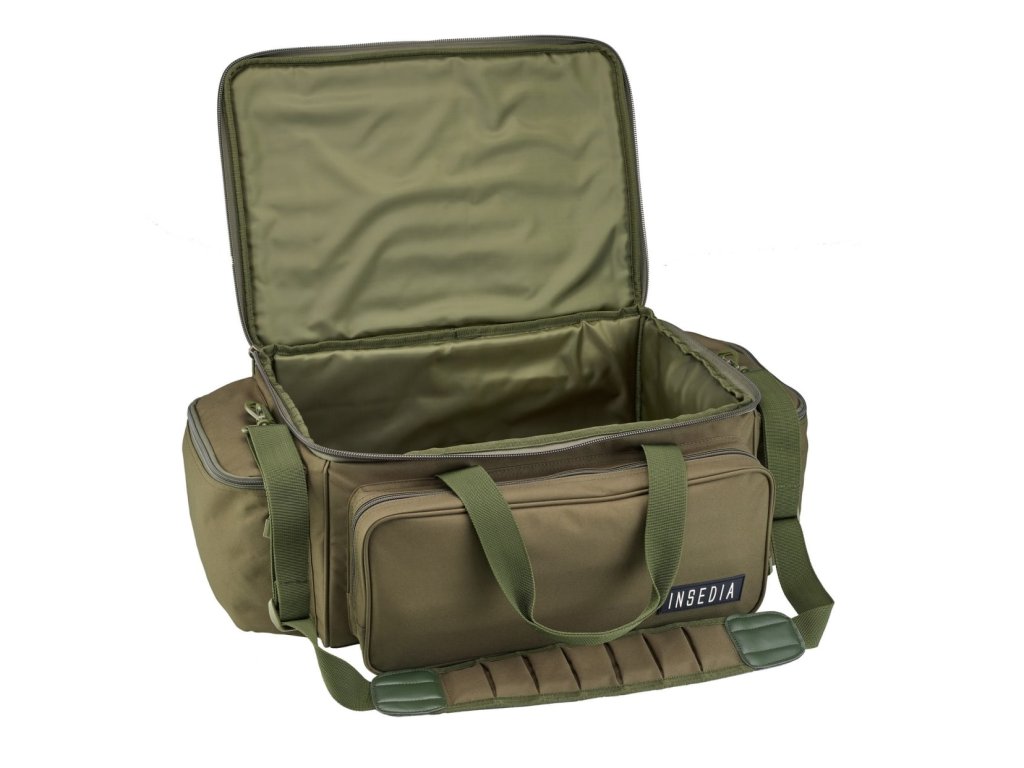 Obsahuje velkou hlavní komoru, která v pohodě uskladní izolační tašku Insedia od Prowess nebo další pouzdra na doplňky ze stejné řady zavazadel Insedia. Dále obsahuje 3 kapsy na zip, které jsou soustředěné po obvodu tašky. Nechybí ramenní popruh opatřený polstrováním pro komfortní nošení. Pro snadné přenášení pak slouží dvě madla, které lze spojit suchým zipem do sebe. Specifikace: - jedna hlavní komora - tři kapsy na zip - polstrovaný ramenní popruh - madlo pro snadné přenášení - rozměry: 46 x 32 x 22 cm - barva: zelená - materiál: 100% nylon s PVCDoplňkové parametry