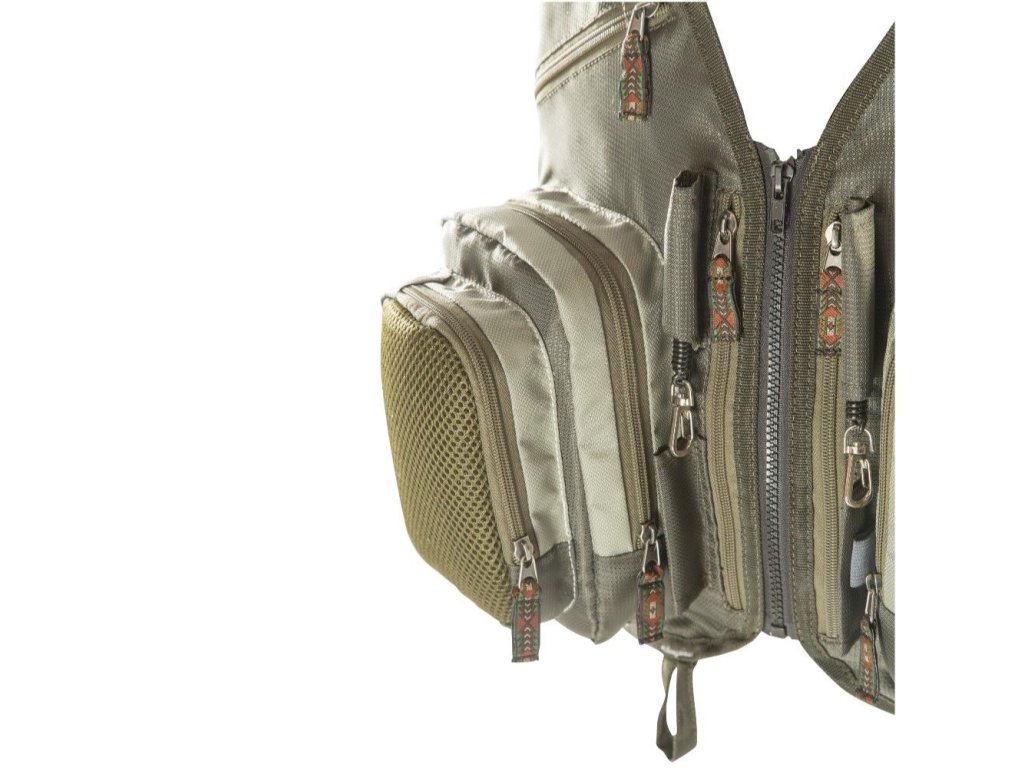 Přední část vesty má vše co byste očekávali od nové vesty. Dvě velké kapsy na krabičky, dvě menší před nimi, čtyři vnitřní kapsy na zip, dvě boční síťované, dvě karabinky na pružince a dvě kapsy, do kterých můžete dát nůžky nebo kleště, aby se vám na karabince nekývaly. Dále má vesta elastické smyčky na různá mazadla a lektvary. Zadní batoh nabízí dostatek úložného prostoru pro mobilního rybáře, který chce nosit s sebou vše potřebné na jednodenní výlet na ryby. Batoh lze zvětšit díky rozšiřujícímu panelu. Uvnitř je také bezpečnostní klip na klíče od auta a zadní kapsa pro vak na vodu. Na batohu jsou ještě dvě vnější kapsy a kapsa na láhev na vodu. Vesta má také dostatek D-kroužků na podběráky... Polstrovaná odvětrávaná záda a polstrované ramenní popruhy vám dají pocit lehkosti vesty. Ramenní a boční popruhy jsou nastavitelné a dělají tak vestu velikostně univerzální.Doplňkové parametry