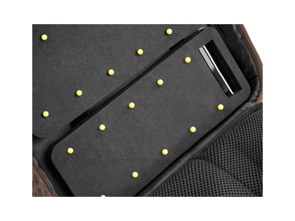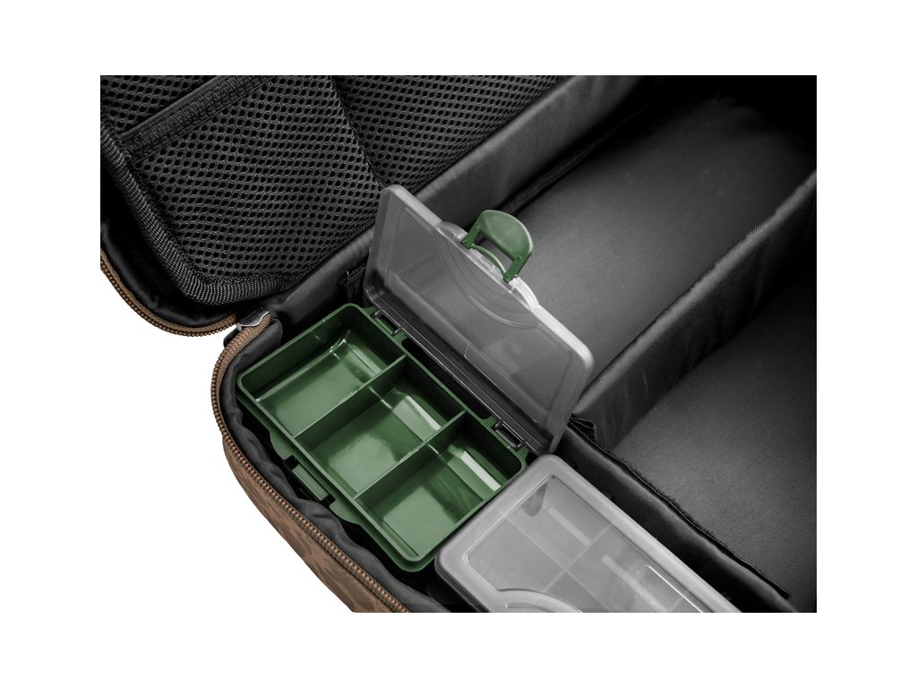 Hlavní přihrádka poskytuje velkorysý prostor pro uložení různé bižuterie, návazcových šňůrek a nářadí potřebného k sestavení vašich montáží. Navíc se v ní nacházejí 4 praktické krabičky, ve kterých bude vaše bižuterie vždy v pořádku. Středový panel je opatřen malými síťovými kapsami na jedné straně a velkou síťovou kapsou na straně druhé. Díky tomuto provedení vždy vidíte, co se nachází uvnitř a bez problémů tak najdete vždy tu požadovanou část výbavy. RigStation obsahuje také dvě pěnové plochy sloužící k dokonalému uspořádání a uchycení vašich návazců. Devizou této tašky je také úchop, situovaný v horní části, díky čemuž tašku při transportu nepřevracíte a všechny komponenty v ní jsou tak stále na svém místě. Navíc je vybavena kvalitními zipy s efektními plastovými jezdci. RigStation doplňuje sérii pod názvem CARPATH, což jistě potěší všechny příznivce této kamufláže.