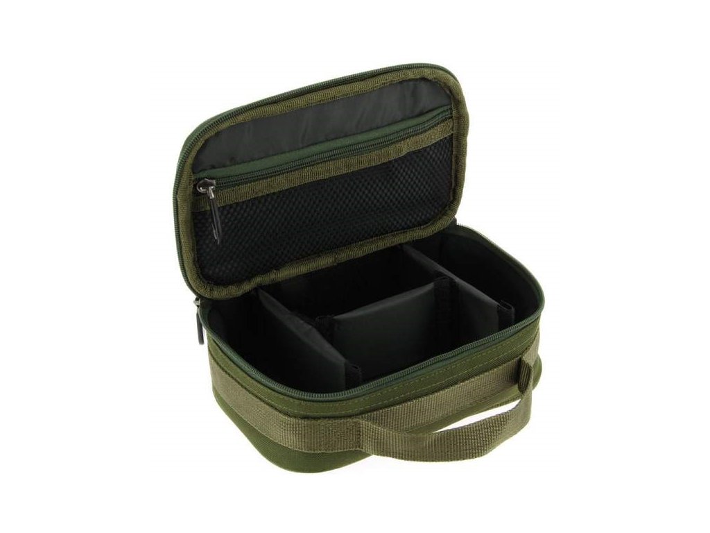 Ideální na kaprová olova - masivní zip a přihrádka na hadičky z PVC ke zhotovení montáží. Lze rozdělit až na 4 oddíly pomocí tuhých přepážek. Celkové rozměry 22 x 14 x 8 cm.