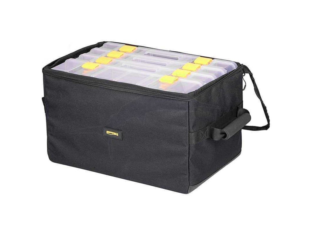 Dokonalý doplněk pro každého kdo chytá z lodě - prostorná taška slouží spíše jako obal na plastové boxy s nástrahami a lze do ní dát gumové nástrah, woblery i těžké mořské nástrahy i jiné vybavení. Lze ji pohodlně přenášet pomocí postranních madel. Super cena za 4 velké plastové krabice na nástrahy :-)