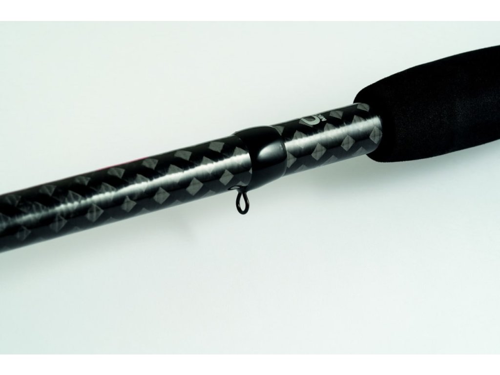 Prut sází na ověřený blank z vysoce odolného grafitu HM-CX1 s osazením oček s profilem K SiC s dvojitými nožičkami proti zamotání. Navíc je prut ve spojích speciálně zesílen pro vysokou odolnost při opakovaném namáhání. Unikátní rukojeť vyrobena v kombinaci korku a EVA materiálu s vysokou hustotou pro maximální kontrolu při nahazování a zdolávání velkých ryb. Specifikace: - délka: 3,30 m - transportní délka: 117 cm - počet sekcí: 3+3 - akce prutu: do 60g - vysoce odolný blank HM-CX1 Pitch Carbon - včetně tří náhradních uhlíkových špiček - rukojeť v kombinaci EVA materiálu a korkuDoplňkové parametry