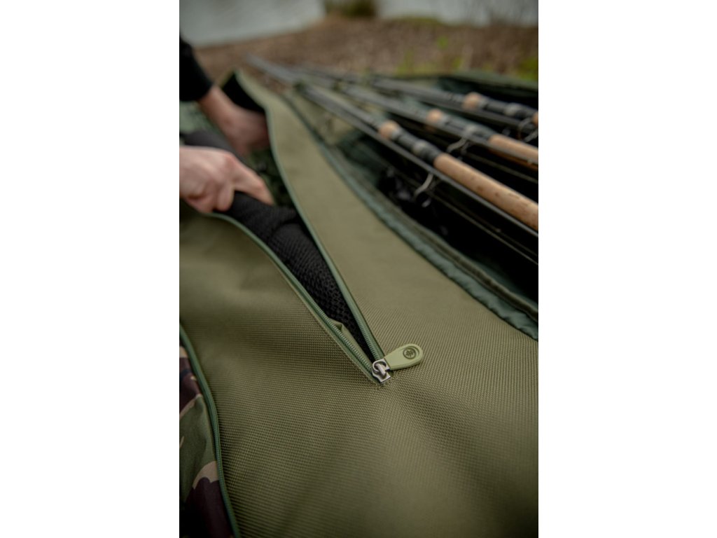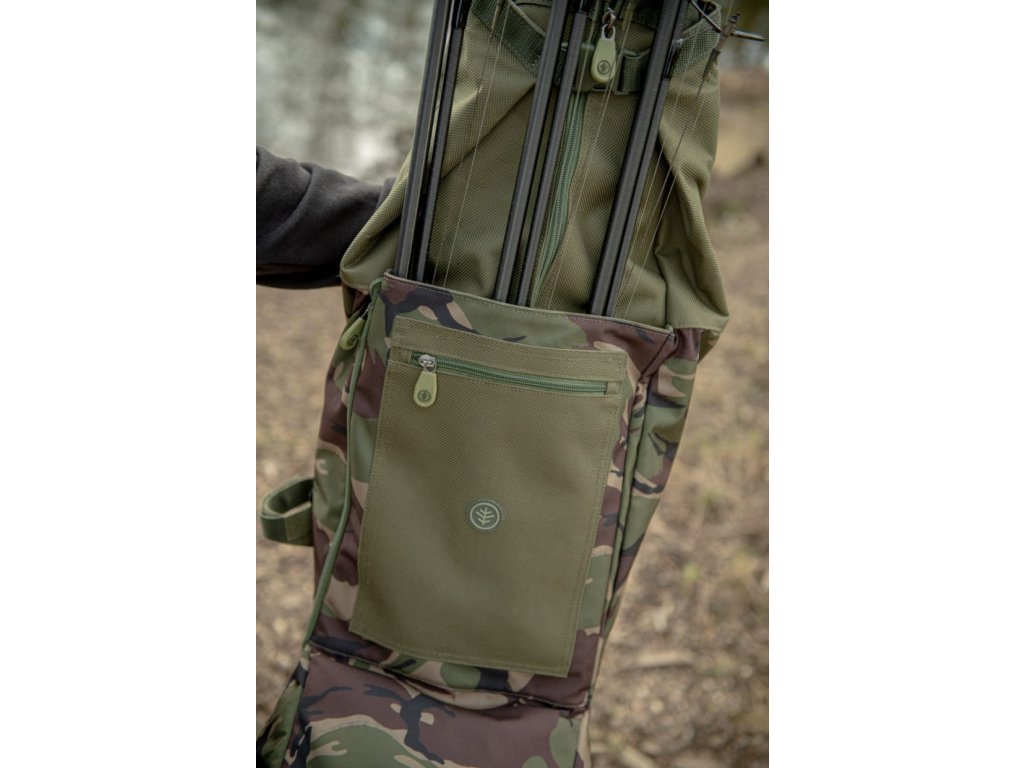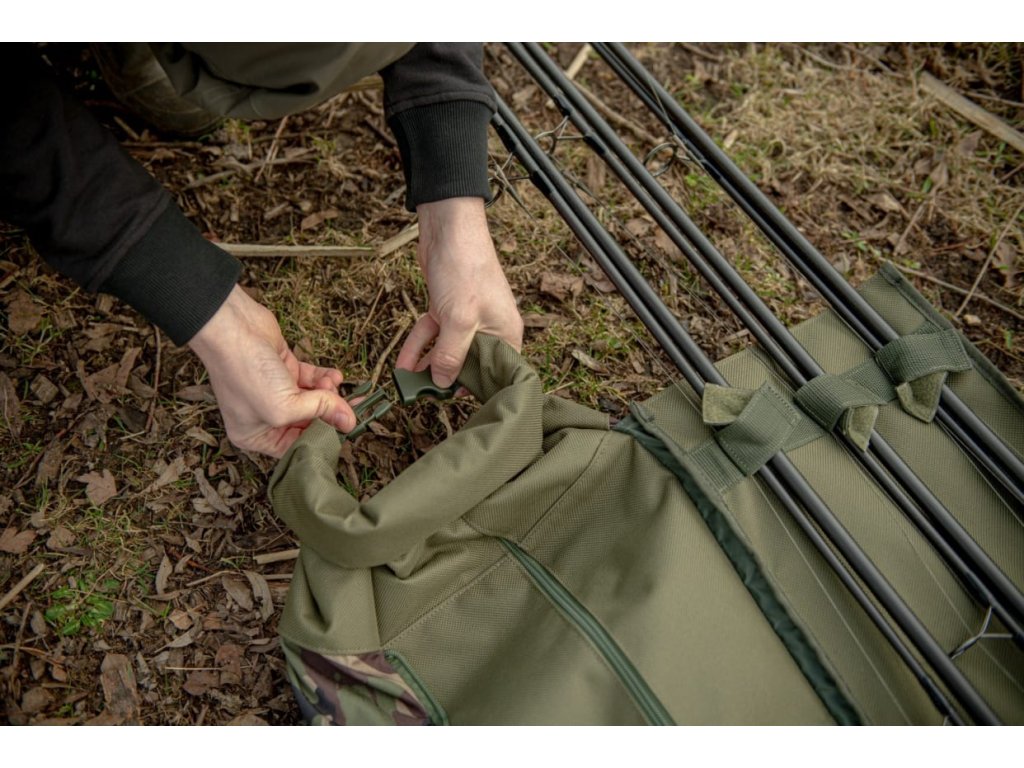 Pouzdro na pruty Tactical HD Quiver Foldall bylo navrženo především pro uskladnění až tři plně osazených prutů. Díky designu Quiver je možné do něj napasovat pruty různých délek. Obsahuje také velkou kapsu pro vážící saky, popřípadě podběráky nebo deštník. Velmi pevný materiál Nylon 1200D zaručuje odolnost, design a dlouhou životnost. Lze ho také lehce očistit vlhkým hadříkem nebo ručníkem. Má komfortní popruh přes rameno, odolné zipy Bespoke a vrchní část pouzdra obsahuje Roll Top design, tedy přebytečnou vrchní část lze lehce srolovat a dopnout plastovými klipsnami pro maximální bezpečnost uzavření. Pouzdro má také vnější kapsu se zipem na olova, zátěže apod. Specifikace: - použitý materiál Nylon 1200D - komfortní popruh přes rameno - polstrované kapsy na navijáky - vnitřní kapsa ze síťoviny - Roll Top design pro konkrétní nastavení požadované délky - velká komora na zipy - externí kapsa se zipem na olova a zátěže - barva: kombinace zelené a camo - rozměry: 1450 mm (délka) x 260 mm (šířka) x 300 mm (hloubka)Doplňkové parametry