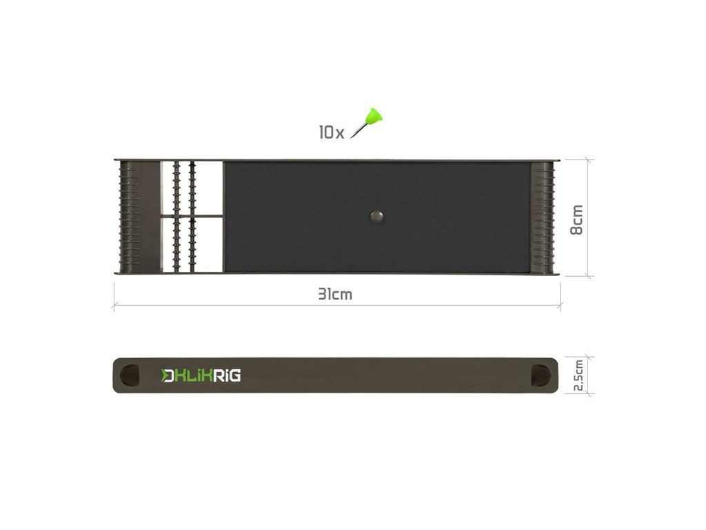 Delphin KlikBOX Rig je oboustranný organizér určený pro přehledné uložení návazců. Obě jeho strany jsou vybaveny identickým systémem, který je tvořen plastovým dílem s jemnými drážkami pro uchycení háčků a platem z tvrzené pěny, do kterého si koncovou sestavu uchytíte pomocí špendlíků, které jsou součástí balení.