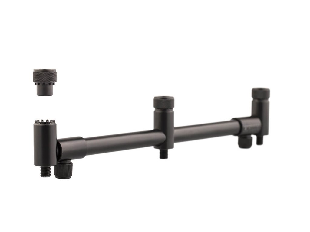 ZFISH Magsafe Buzzer Bar 3 Rods je velice precizně zpracovaná, kvalitní a pevná hliníková hrazda v černém matném provedení. Velkou výhodou této hrazdy jsou integrované magnetické adaptéry/rychlospojky k hlásičům, které Vám velice usnadní montáž a demontáž hlásičů. Další výhodou je teleskopicky nastavitelná šíře 31-45 cm a navíc hrazdu lze ukotvit k zemi pomocí jedné, dvou nebo tří závitových vidliček. Díky tomu již nepotřebujete žádný kotvící kříž a nemusíte mít obavy, že se vám hrazda bude protáčet při prudkém záběru.