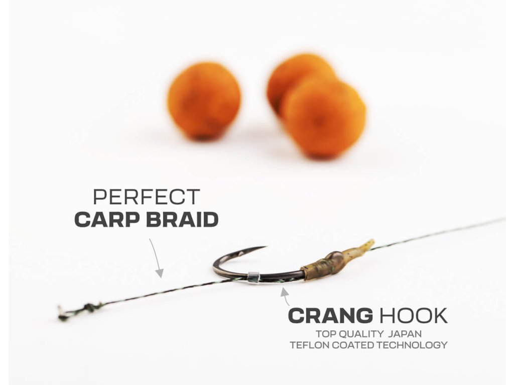 Hotové kaprové návazce s měkkou šňůrkou a superostrým háčkem Crang. Ideální pro rychlou výměnu a přizpůsobení se aktuálním podmínkám. Součástí montáže je převlek proti zamotání a vlasové rovnátko, které zajistí správnou rotaci a s ní spojené přesné zaseknutí háčku. V balení kromě návazců naleznete i rychlovýměnné obratlíky a zarážky pro správné nastražení nástrahy. Získáte tak kompletní montáž, se kterou nezbývá než jít k vodě.