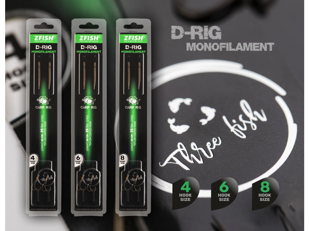 Prémiový ručně vázaný návazec Monofilament D-Rig je ideální volbou pro rybáře, kteří hledají vysokou kvalitu, spolehlivost a maximální efektivitu při lovu kaprů. Tento návazec využívá kvalitní monofilament, který poskytuje optimální kombinaci pevnosti a flexibility. Háček typu Curve Shank je navržen pro ideální úhel, který zajišťuje efektivní zaseknutí háčku do kapří tlamy. Je extrémně ostrý, odolný proti korozi a opotřebení, což zaručuje dlouhou životnost i v náročných podmínkách.Speciální rovnátko – D-Rig Kicker je klíčovým komponentem tohoto návazce. Toto inovativní rovnátko výrazně zlepšuje pohyb háčku a nástrahy, což vede k plynulejšímu pohybu nástrahy a lepšímu záseku. Díky unikátnímu tvaru je D-Rig Kicker ideální pro precizní a efektivní prezentaci nástrah. Tato zcela nová řada s označením "3Fish", to je bižuterie v prémiové kvalitě. Kdo jednou zkusí a pozná ten rozdíl, jiné už chtít nebude.