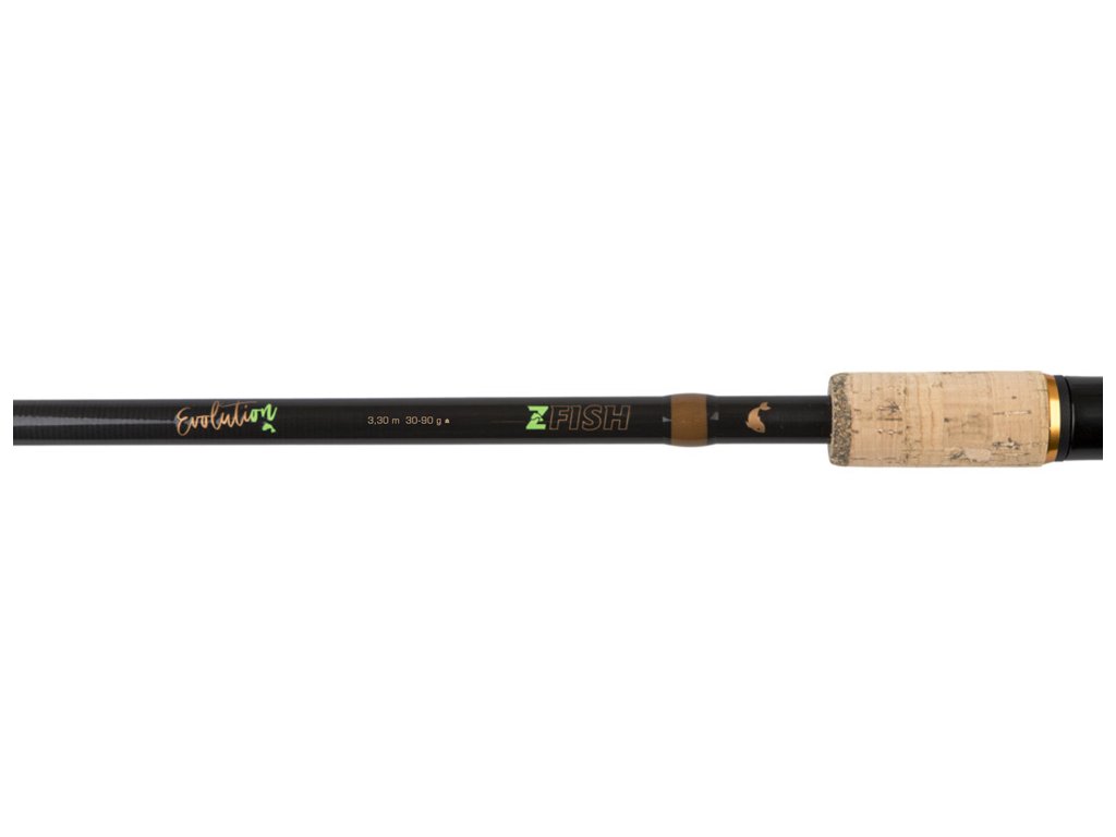 ZFISH Evolution Feeder 30-90g, 11Ft, (Medium) patří do řady rychlých a hlavně přesných feedrových prutů Evolution. Akční, velmi spolehlivý, lehký prut se štíhlým blankem snese ty nejpřísnější paramatery. Během testování byl několikrát prověřen zdoláváním velkých amurů nad 90 cm. Nekompromisní prut určený pro různé feedrové techniky, je vyroben z vysoce kvalitního, pružného carbonu 24T. Prut je opatřen kvalitní korkovou rukojetí, doplněn o symbol bronzové rybičky, která zanechává u celého prutu velmi elegantní dojem.